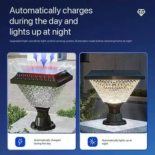 This solar garden light draws sunlight during the day and automatically stays lit all night long.Its diamond-cut design is incredibly eye-catching.